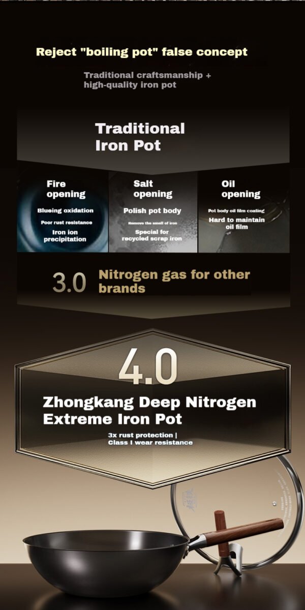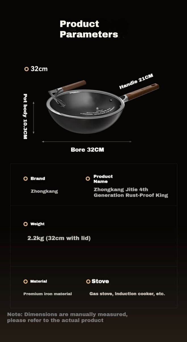| 🛒 Model | Deep Nitrogen Anti-Rust Pure Iron Wok |